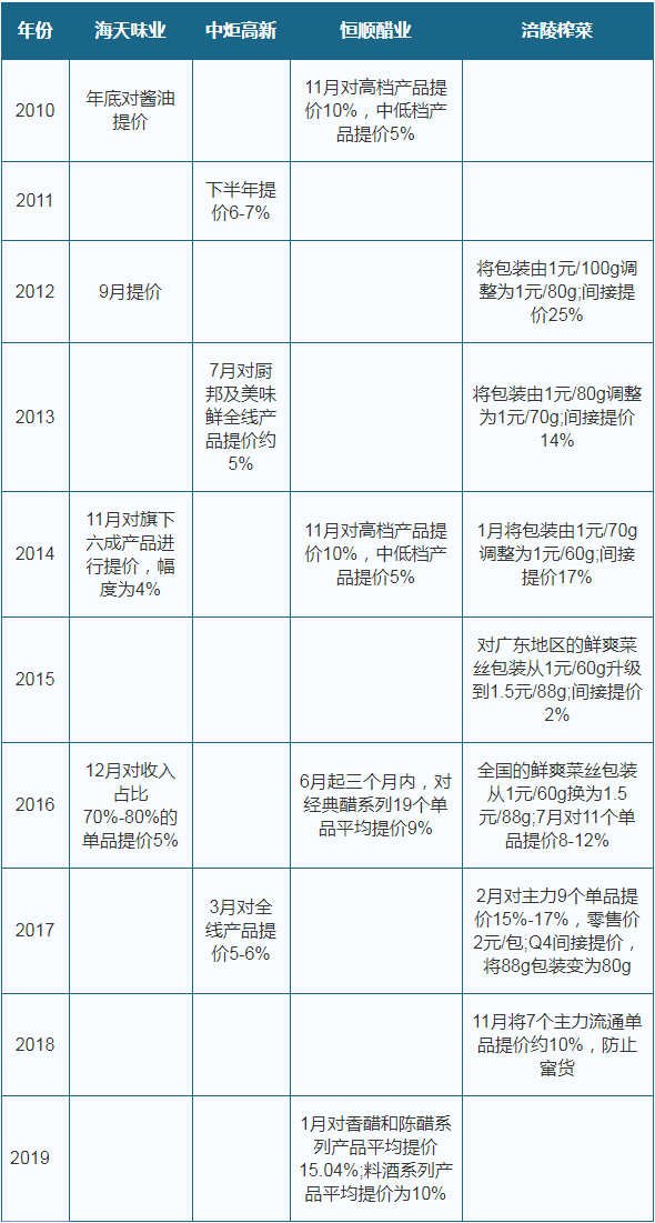 调味品企业提价情况