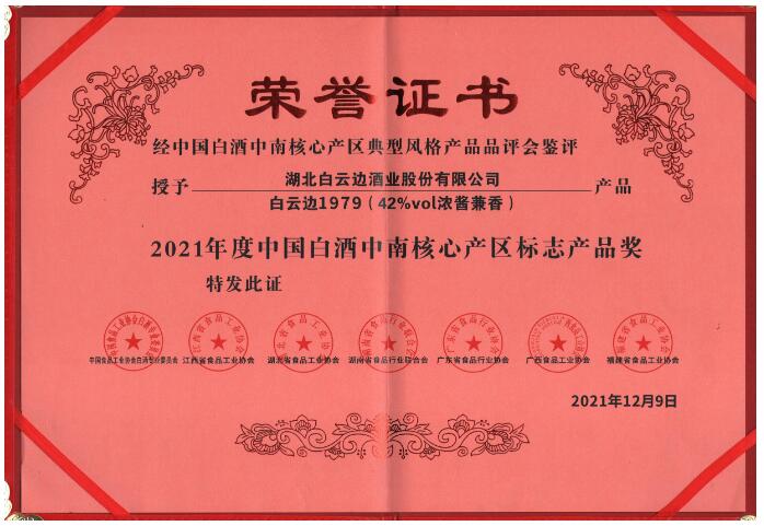 近日,从第三届中国白酒中南核心产区高质量发展峰会上传来喜讯,“42度白云边1979纪念酒”以高分摘得“2021年度中国白酒中南核心产区标志产品奖”。