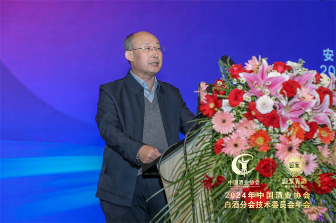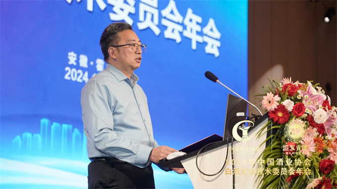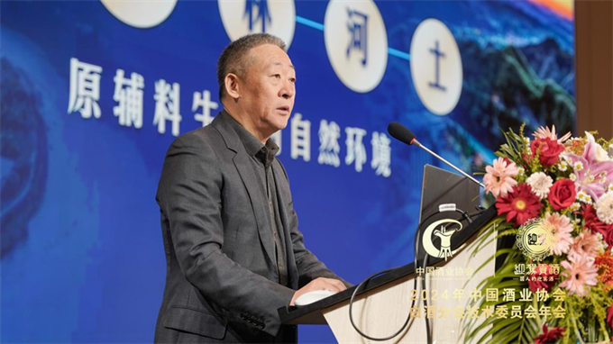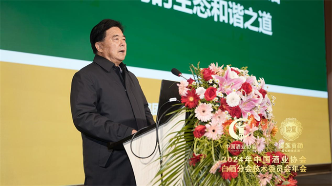 此外,参加年会的全国各酒业省市协会领导有:贵州省酿酒工业协会理事长黄平、陕西省酒业协会会长贾志勇、河南省酒业协会常务副会长兼秘书长赵书民、新疆酿酒工业协会理事长王莹、安徽省食品行业协会专职副会长王化斌;参加年会的行业和高校专家有白酒专家栗永清,全国白酒工业标准化技术委员会秘书长宋全厚,白酒专家张五九,白酒专家肖冬光,中国食品发酵工业研究院有限公司党委书记、总经理郭新光,中国科学院微生物研究所研究员白逢彦,白酒专家、中酒协年份酒管理委员会主任胡义明,中国农业大学教授韩北忠,四川大学先进酿造科技创新中心主任许正宏,江南大学研究员范文来。年会上,来自各大领军企业的领导有:宜宾五粮液股份有限公司总工程师、食品安全总监杨韵霞,宜宾五粮液股份有限公司副总经理岳松,宜宾五粮液股份有限公司技术总顾问赵东,四川剑南春(集团)有限责任公司总工程师徐占成,泸州老窖股份有限公司副总经理、安全环境保护总监张宿义,泸州老窖股份有限公司监事会主席、泸州老窖酿酒有限责任公司党委书记、总经理杨平,山西杏花村汾酒厂股份有限公司总工程师韩英,四川郎酒股份有限公司常务副总经理、总工程师蒋英丽,四川郎酒股份有限公司副总经理、常务副总工程师沈毅,江苏今世缘酒业股份有限公司副董事长、副总经理、总工程师吴建峰,衡水老白干酒业股份有限公司副董事长张煜行,陕西西凤酒股份有限公司总工程师冯雅芳,茅台科学与技术研究院公司党总支书记、董事长杨帆,江苏洋河酒厂股份有限公司技术中心副总经理葛向阳,仰韶酒业有限公司副总经理、总工程师韩素娜,金徽酒股份有限公司总工程师张智良,山东青州云门酒业(集团)有限公司总经理王邦坤,湖北稻花香酒业股份有限公司技术顾问谢永文,舍得酒业股份有限公司副总裁饶家权等数百位酒企代表。年会由中国酒业协会副秘书长杜小威主持。宋书玉理事长以“源于⾃然 成于⽣态”为题发表了年会致辞。他表示:⾃然⽣态和酿酒微⽣态是中国⽩酒酿造的两⼤核心⽣态体系。自然生态孕育了美酒、酿造微生态成就了美酒,自然生态与酿造微生态丰富了美酒。⾃然⽣态是人类可观的⾃然环境。它们既由⼭、⽔、林、河、⼟组成,也由日照、降水、风向、温湿度、二氧化碳排放、空气质量等自然资源组成。中国酒业对自然生态的研究处于强化加强阶段,未来将深入到原辅料⽣⻓的⾃然环境研究。