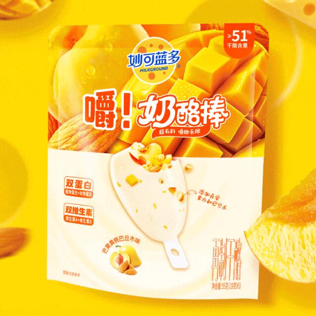妙可蓝多「嚼!奶酪棒」命名直接点明产品核心卖点有料可嚼(果肉+坚果),与普通软质奶酪棒形成鲜明对比。视觉上突出水果果肉和坚果元素,增强食欲和有料感知。在高钙基础上强调牛奶、植物双重蛋白以及维生素A/D,强化健康零食属性。产品适销拥有强势KA卖场、中高端便利店尤其是学校/商圈店网络,以及稳定冷链配送能力的经销商。