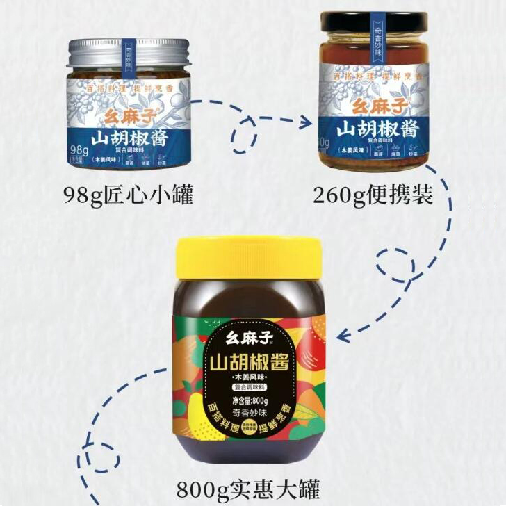 么麻子山胡椒酱产品命名突出核心原料山胡椒,具有独特辛香风味,吸引追求特色风味和地域美食的消费者。多规格覆盖不同场景和客群需求,提升铺货广度。在西南地区有强势商超网络,在线上美食垂类/特色食品电商有运营优势,拥有特色餐饮渠道资源,掌握高端超市或特产渠道的经销商也可重点关注。