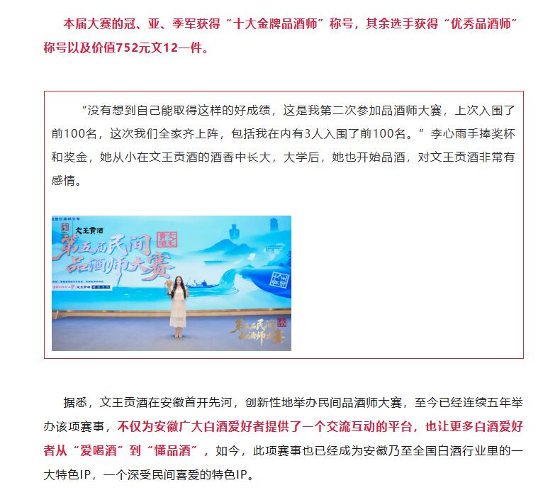 从“爱喝”到“懂品”!文王贡酒第五届民间品酒师大赛圆满成功