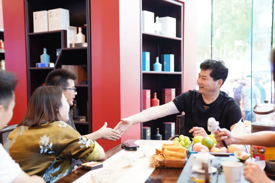 (中鉴酒业陈福伟董事长(右)迎接宾客)