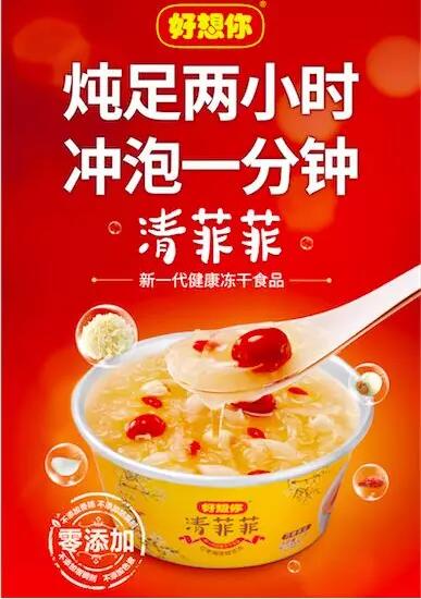 2017年初,基于对产品布局的新思考和对市场环境变化的新判断,好想你大力推广FD真空冻干技术在产品中的应用,其代表产品“清菲菲”红枣湘莲银耳汤成为又一个爆款,上市后半年单品营收5000万元。
