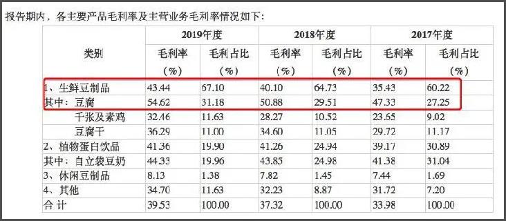 但是,可能连蔡祖明自己都没想到,凭借现代化的生产,一块豆腐的毛利率竟不亚于房地产、银行等行业。招股书显示,祖名股份2019年营业收入高达 10.48 亿元,净利润为 9016.51 万元。其中豆腐的毛利率已经从 2017年的47.33%提升至2019年54.62%。