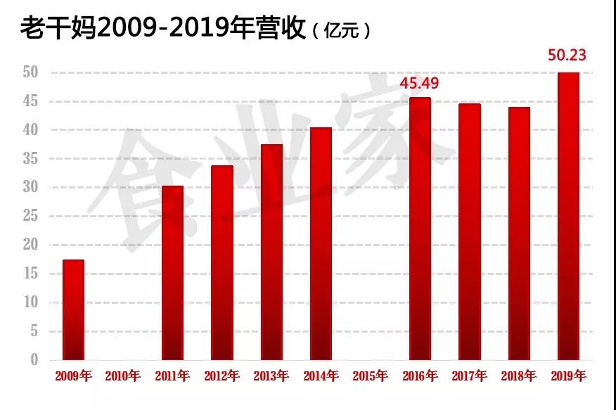 在陶华碧的努力下,老干妈在业绩持续下滑后,首次出现了止损,并且出现了增长,2019年老干妈完成销售收入50.23亿元,同比增长14.43%,创历史新高,在国内的市场覆盖率达到96%以上。