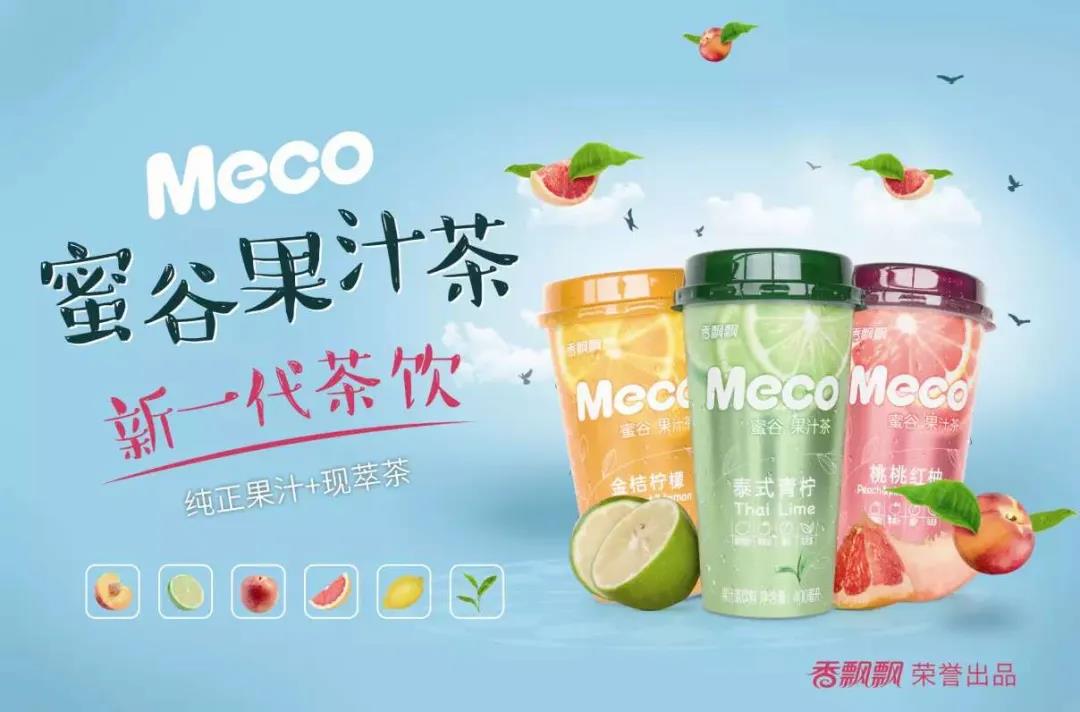 MECO果汁茶是香飘飘于2018年7月推出的,力图打造“新一代茶饮”。2019年,MECO果汁茶营收8.68亿,有望成为饮品行业的下一个10亿单品。
