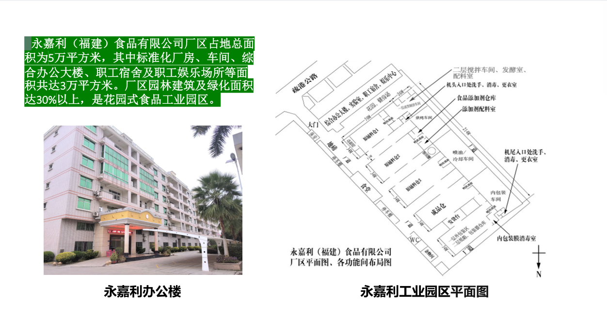 永嘉利(福建)食品有限公司成立于2003年,是一家以食品研发、生产、OEM/ODM代加工、国内外销售为一体的现代化食品企业,现贸易范围覆盖中国,东南亚,北美等多个国家。永嘉利工业园,占地5万平方米,坐立于美丽的福建省龙海浮宫开发区,拥有现代化饼干生产流水线3条,员工300余人(其中包含管理人员52人),饼干日产能逾60吨以上。经过20多年来的磨砺沉淀,公司秉承“优质、创新、时尚、健康、美味”的经营理念,以传统美食工艺结合现代食品生产技术,致力于打造让客户满意、放心的品牌企业。