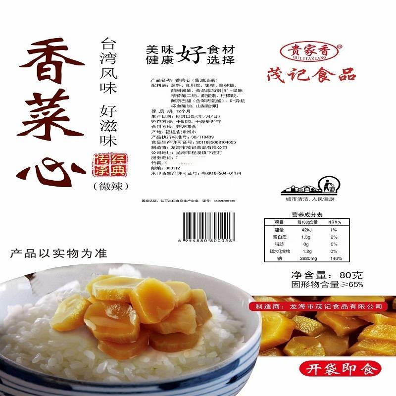 龙海市茂记食品有限公司是一家国家认证、认可出口食品的生产企业,专业生产果蔬保鲜;罐头;酱菜企业。公司与台湾合作,共同致力于打造国内一 流生产、研发、销售产业化经营企业。公司拥有“贵家香”品牌,公司从果蔬菜种植基地到初加工;深加工形成一 条龙产业模式。