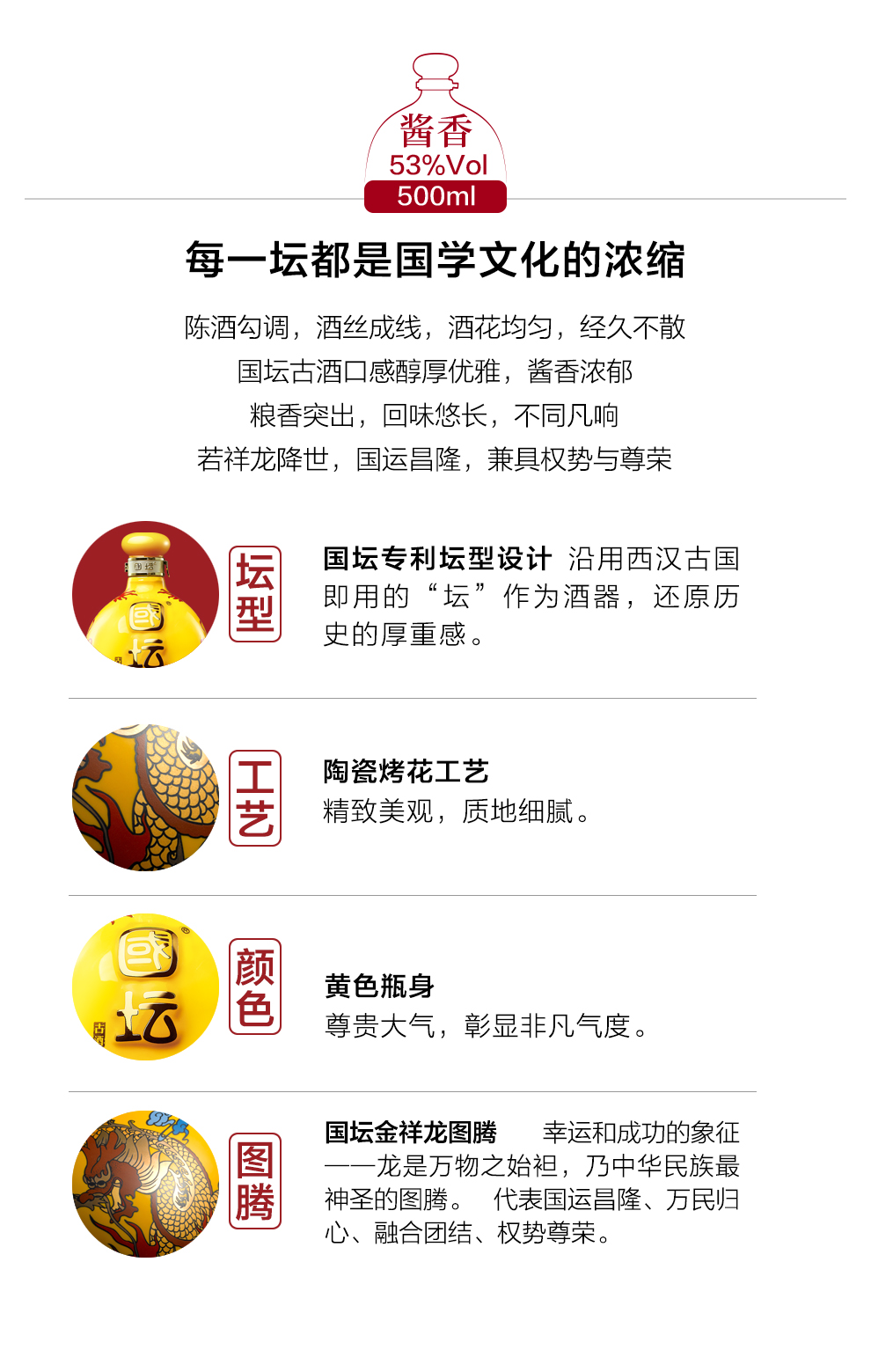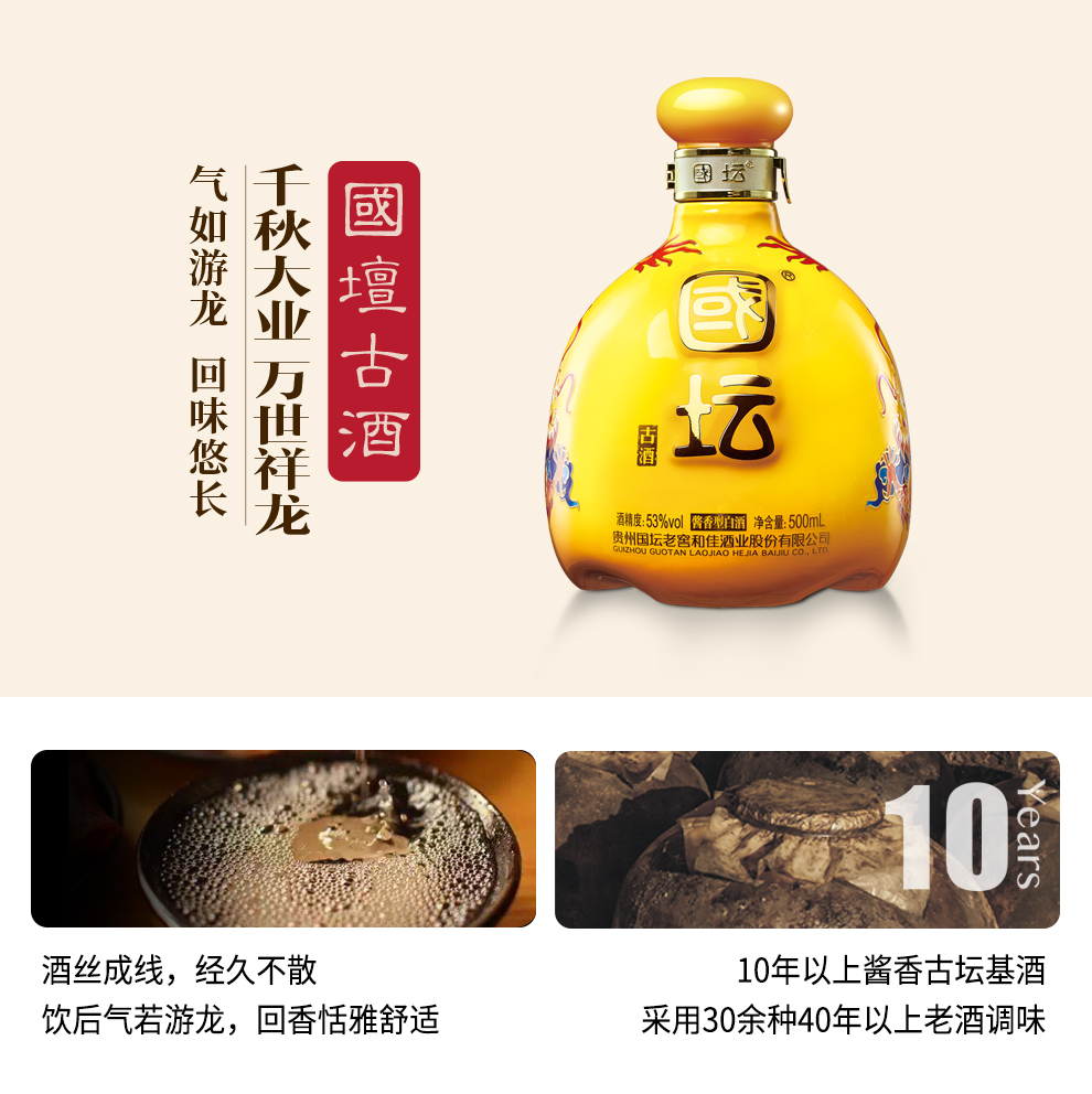 • 【国坛 古酒】烤花金祥龙 茅台镇酱香型白酒53度500ml 收藏送礼
