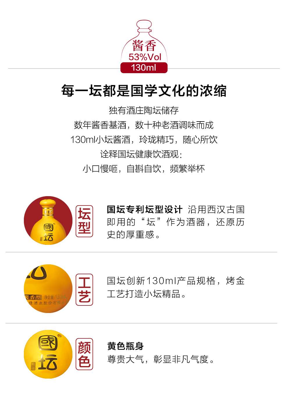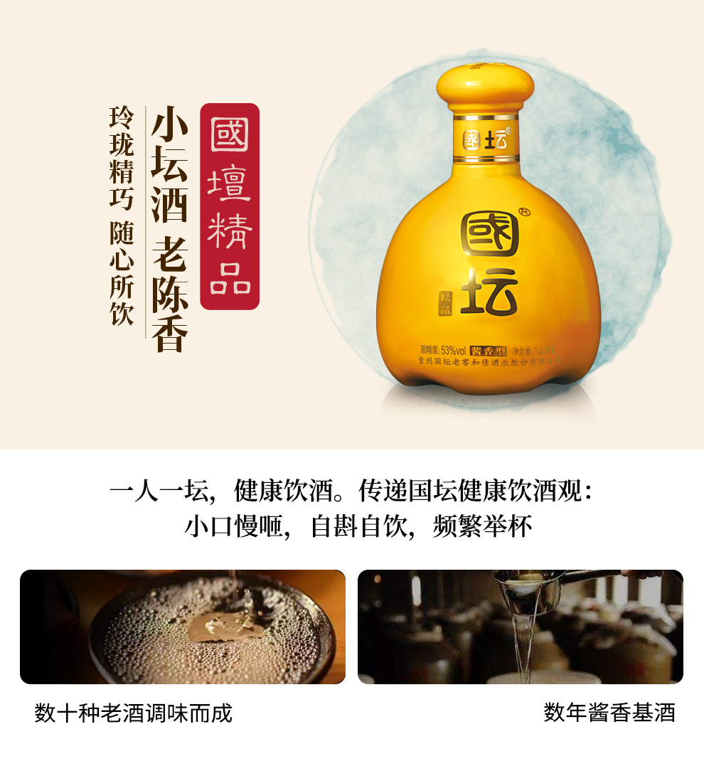 • 【国坛 精品酒】 烤金瓶 国坛老窖酱香型白酒53度130ml