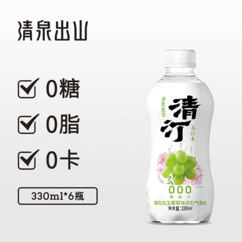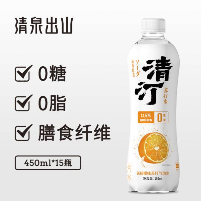 • 清泉出山清汀气泡水0糖0脂青提味450ml*15瓶