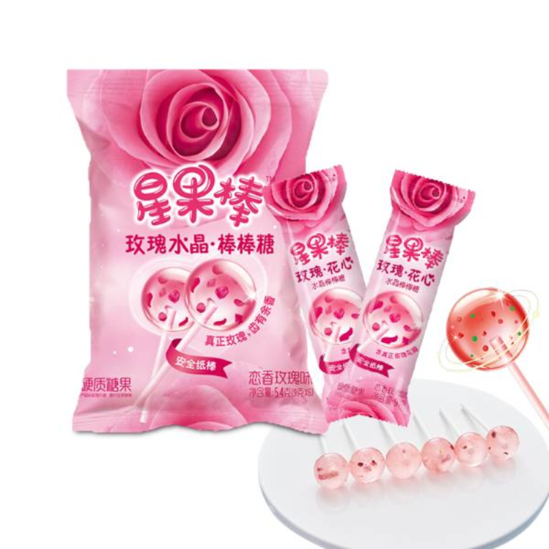 富滋食品星果棒-恋香玫瑰水晶网红棒棒糖 含真正果汁