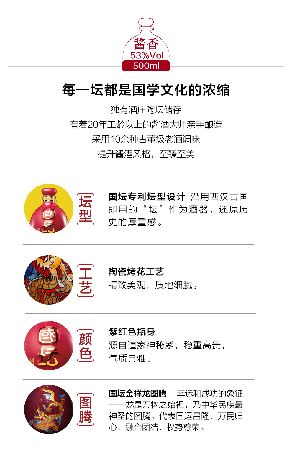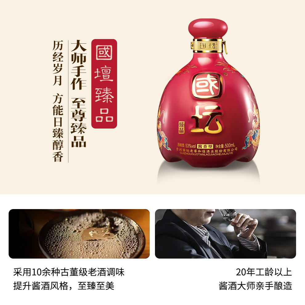 【国坛 臻品酒】烤浮雕金祥龙 国坛老窖酱香型白酒53度500ml