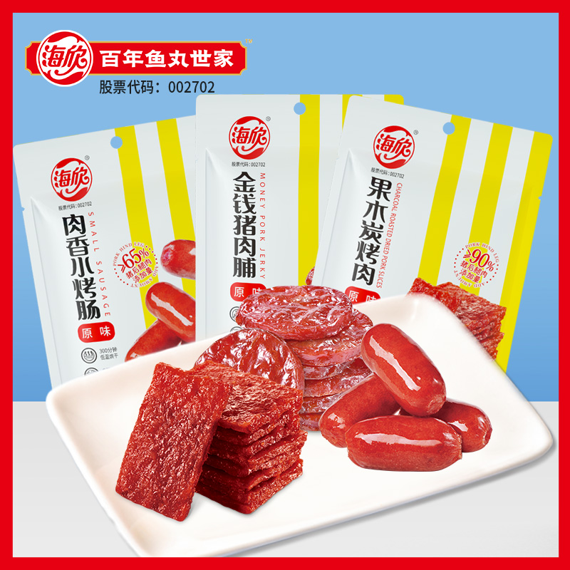 【海欣-休闲肉制品系列】海欣果木炭火烤肉金钱猪肉脯肉香小烤肠小肉肠小肉枣 网红爆款零食特产肉干即食食品