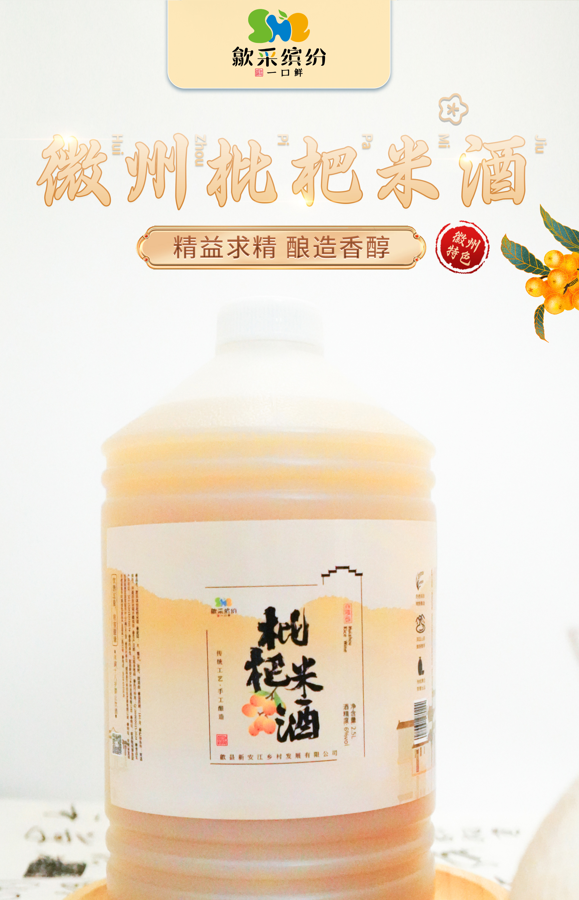 歙采缤纷徽州米酒(枇杷味)1L