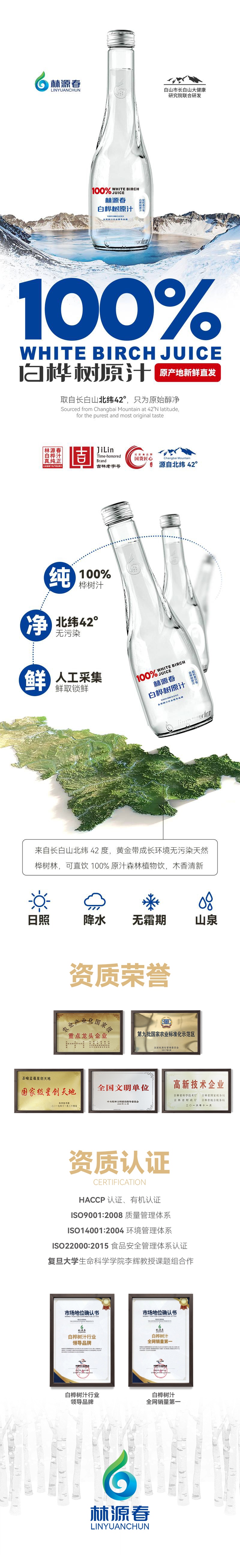 林源春白桦树汁饮料蓝瓶