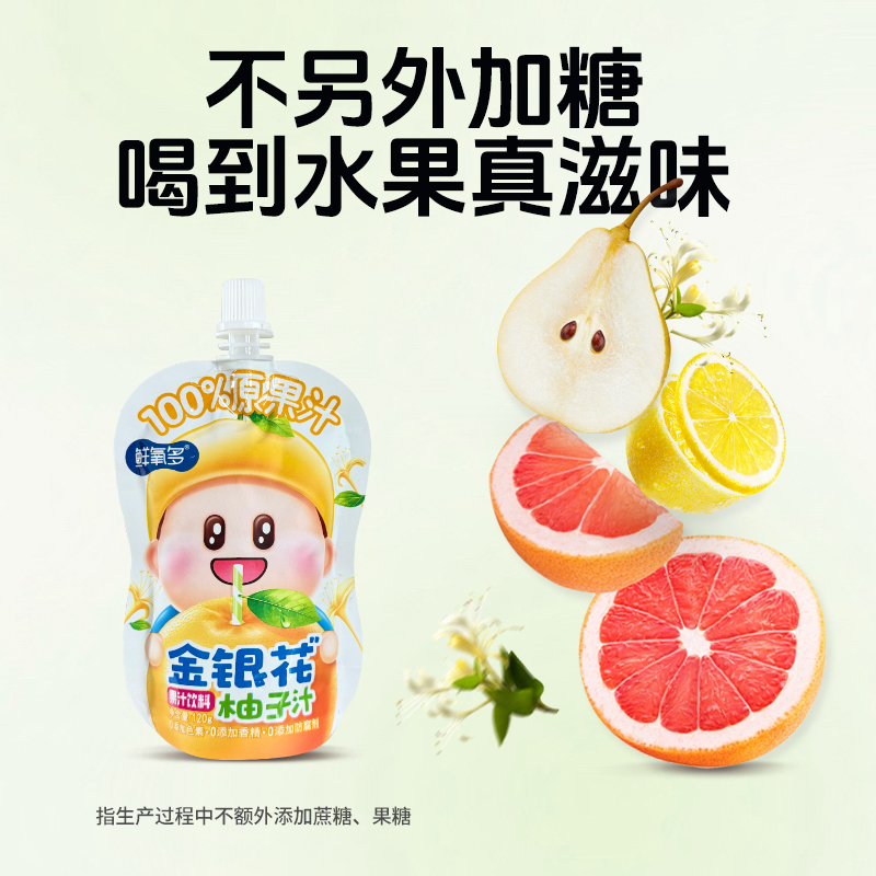 鲜氧多白桃果汁、蜂蜜柚子果汁