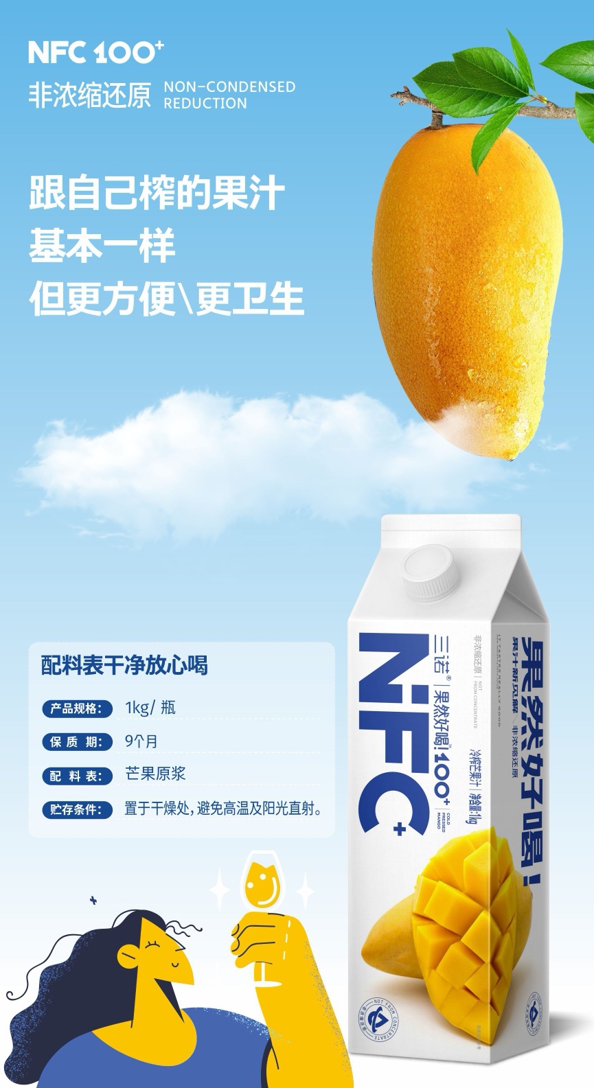 三诺果然好喝NFC芒果汁1L