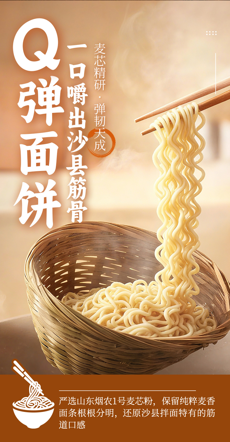 正宗沙县拌面葱油花生酱冻干面儿童早餐半成品速食干拌面条挂面饼