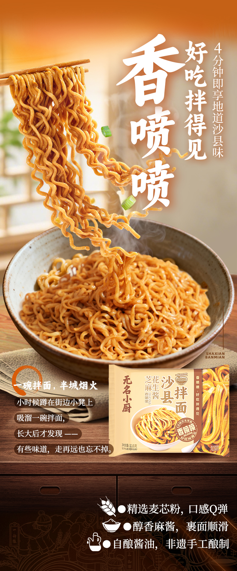 无名小厨沙县拌面花生酱正宗葱油拌面特色早餐桶装方便面速食夜宵