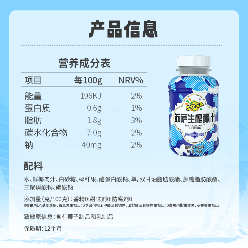 1千克苏萨生榨椰汁(小蛮腰瓶)