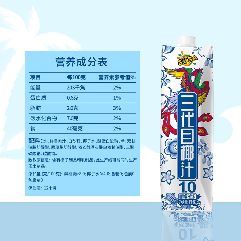 1千克苏萨生榨椰汁(方盒)